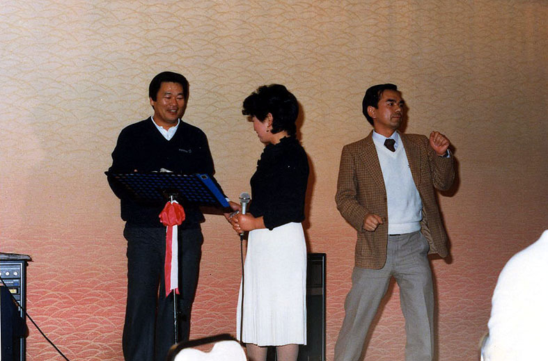 最初の項目でも述べたように、私はJA5CBB (JH5AVM)の紹介で、昭和41年頃にJA5BHZ 近藤さんとはおつき合いさせて貰っていましたが、数年後彼が 福岡の大学へ進学したため音信が一時途絶えていましたが昭和52年頃電化商品の販売店を経営していた近藤さんと再会する事が出来ました。 時代はバブルの絶頂期で私は現場の所長をしながらゴルフに熱中したりスキューバーに凝ったりマリンスポーツ水上スキーに熱を上げていました、そんな 有る時近藤さんが経営するアナンデンカへ出入りする同年代の人からバンドを作らないかと言う話が出て、私たちの建設工事使うショベルをもじった 「シャベル アンド モッコ」と命名したバンドを作り上げました、 ピアノ :大和自動車社長 ドラム :アナンデンカ社長 テナーサックス:岡田組山崎さん リードギター :岡田組赤沢さん サイドギター :徳島カスバル川原さん ベースギター :岡田組日下 が担当し練習に励みました。 そのうちに演奏を誰かに聴いて貰いたく成り、友達の誕生会とかクリスマスとか、忘年会などで演奏をしていましたが、次第に聞いてくれる人達が多く 集まり、その会を「グルツペせこいわ」と称して30名近い人達が旅行に行ったり、花見をしたりと行動を一緒にする親睦団体に育ち、アマチュア無線の講習会 を自分たちで開催し多くの免許所持者を育てました。 |